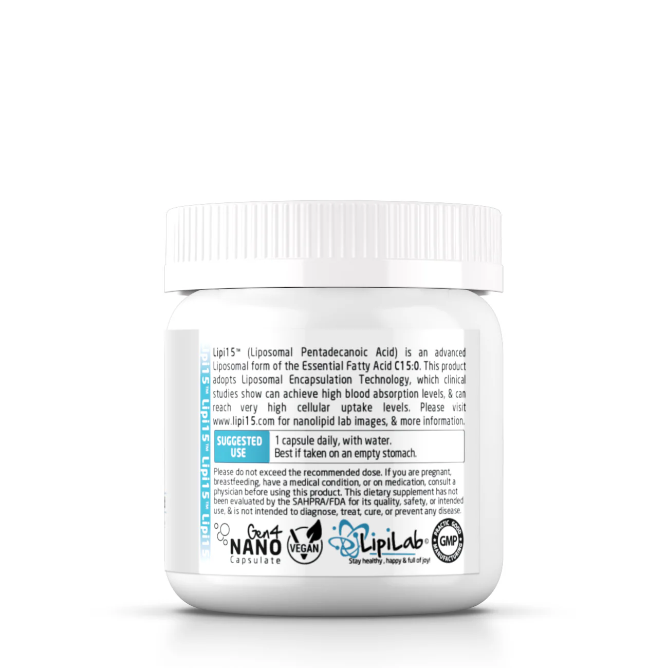 Lipi15™ (Liposomal Pentadecanoic Acid) is an advanced Liposomal form of the Essential Fatty Acid C15:0. This product adopts Liposomal Encapsulation Technology, which clinical studies show can achieve high blood absorption levels, & can reach very high cellular uptake levels. Please visit lipi15.com for nanolipid lab images, & more information.